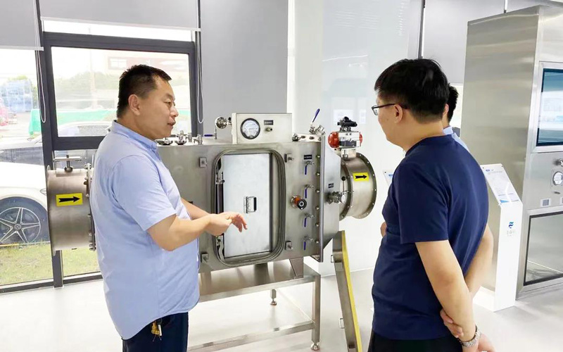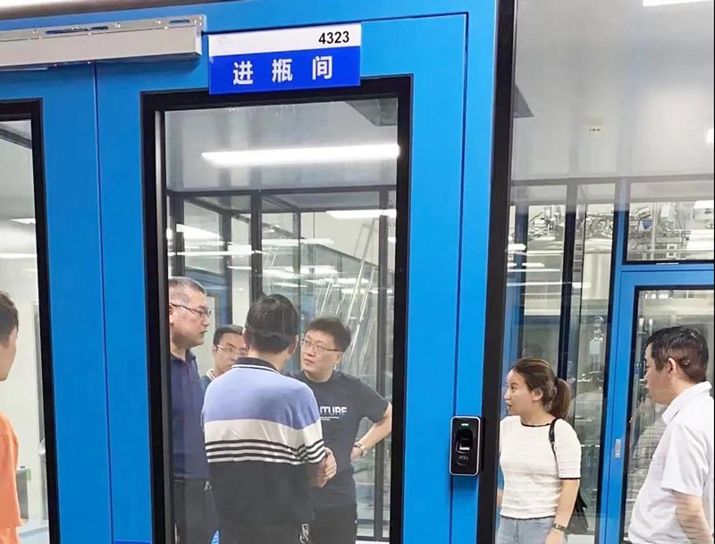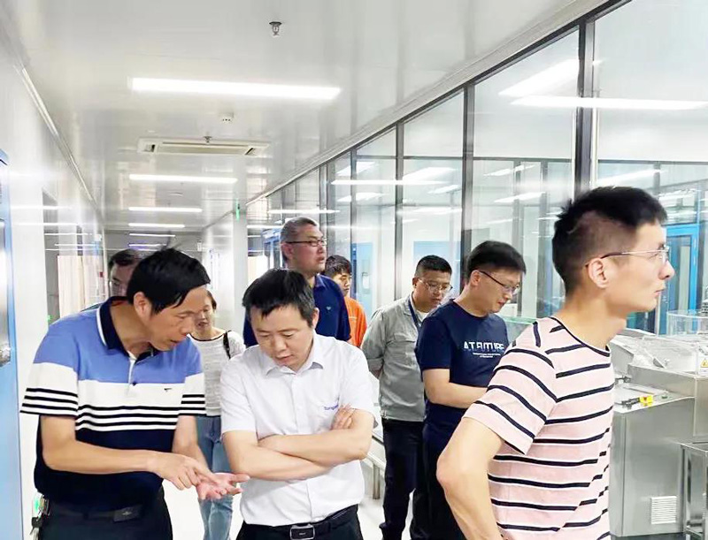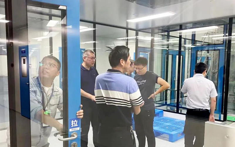 On June 20th, Mr. Lin of Quality Inspection Department and Mr. Zheng of Production Department of Jiangxi Haoran Biopharmaceutical Co., Ltd., accompanied by President Jiang of Rongsen Purification and the business department manager, visited a well-known pharmaceutical company in Nanjing constructed by Rongsen Purification. Oral Liquid Workshop-Fully Transparent Glass Workshop Project.