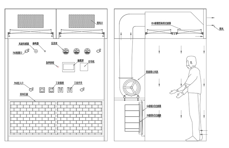 4、雙層負(fù)壓設(shè)計(jì),避免交叉污染,保護(hù)人員安全和背景區(qū)潔凈度