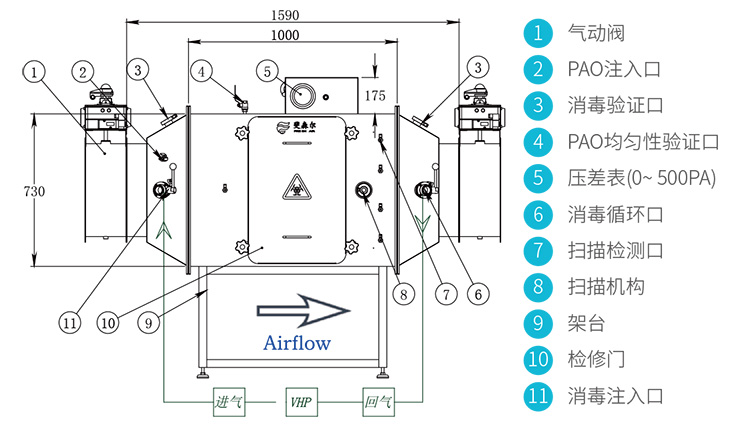 由于過濾器在工作過程中已截留高活性或高毒性的有害氣溶膠,故需要在更換過程中保證過濾器與外界環(huán)境無任何接觸,可有效防止有害氣溶膠擴(kuò)散,避免對(duì)人員及環(huán)境產(chǎn)生生物危害,是一種用于特定生物風(fēng)險(xiǎn)環(huán)境,以去除排風(fēng)中有害生物氣溶膠為目的一種過濾裝置。
